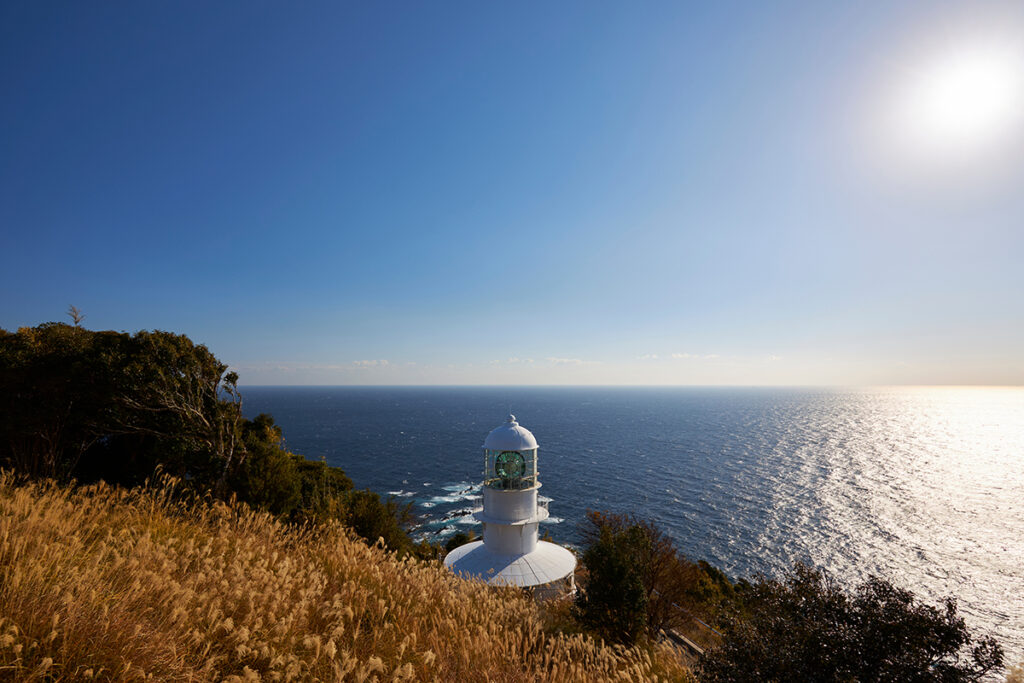At Cape Ashizuri, dramatic cliffs and a white lighthouse overlook a 270-degree ocean panorama.