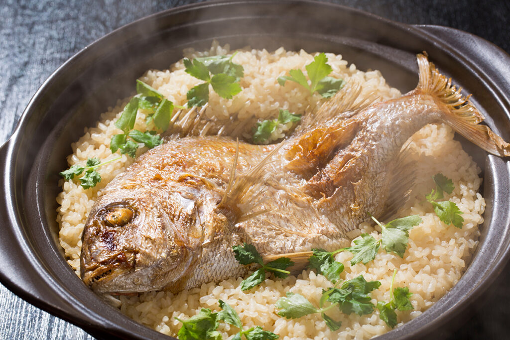 The regional specialty Tai-meshi (Sea Bream Rice) comes in two styles: