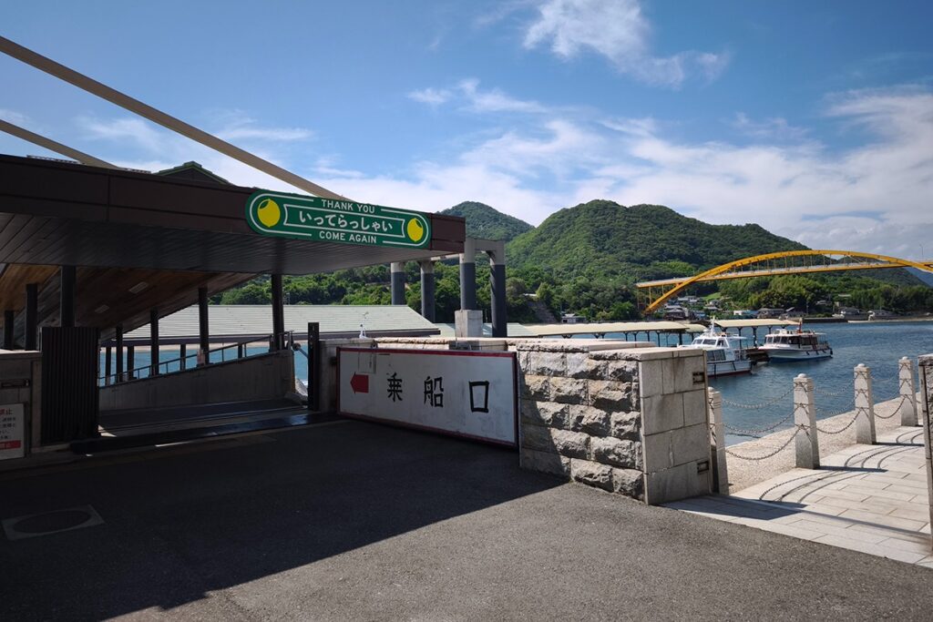 The ferry ride offers a final chance to enjoy the Inland Sea from the water, watching the bridges you crossed recede into the distance.