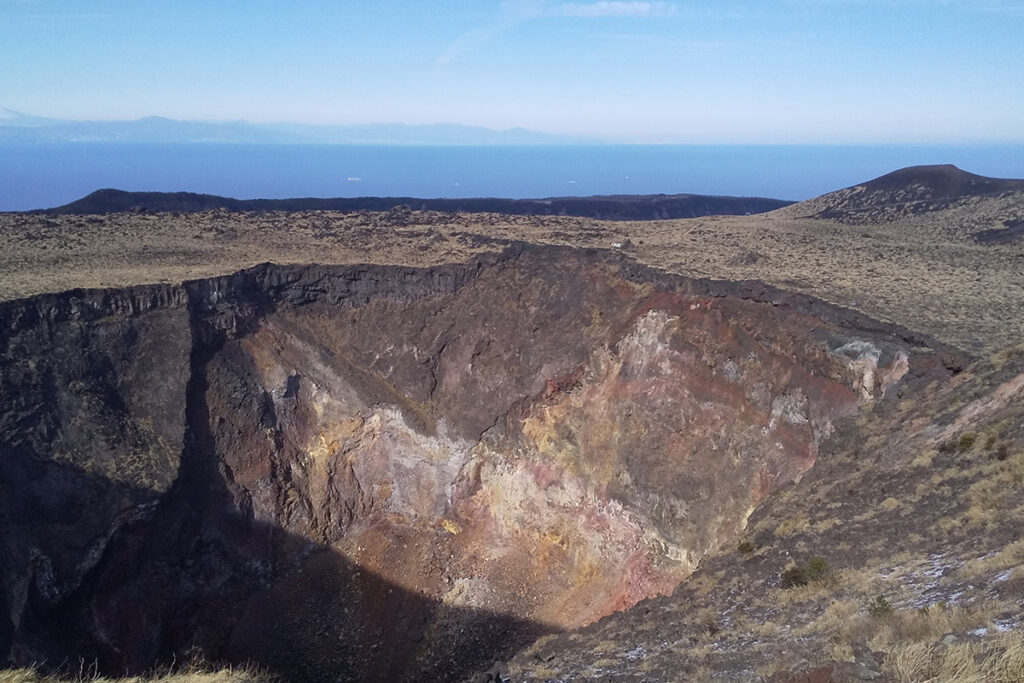 The circular route around the crater is called Ohachi-meguri, where you can walk along the rim of a roughly 300-meter-wide crater. Looking down into it, you can feel the living energy of the Earth beneath your feet.This is also the legendary setting tied to Godzilla’s story, adding a unique cultural layer to the geological experience.