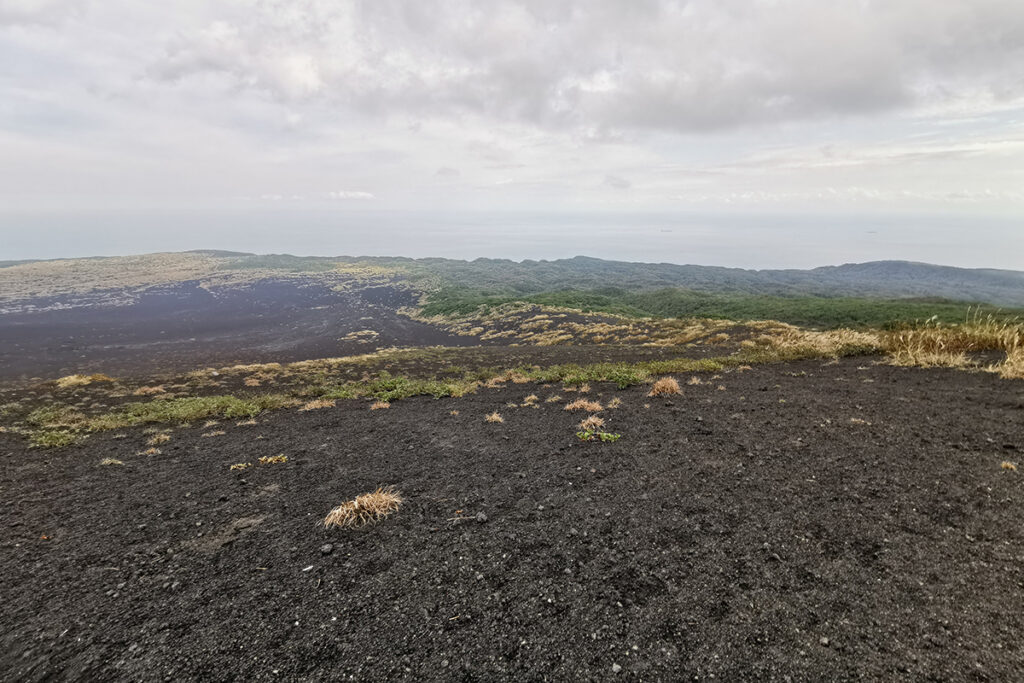 At the summit entrance, it’s time to switch from cycling to trekking. It’s recommended to wear comfortable walking shoes or SPD-compatible footwear for this section.From the trailhead, a paved path leads to the crater area in about 45 minutes on foot. The landscape is stark and powerful—formed by lava flows from the major eruption of 1986.