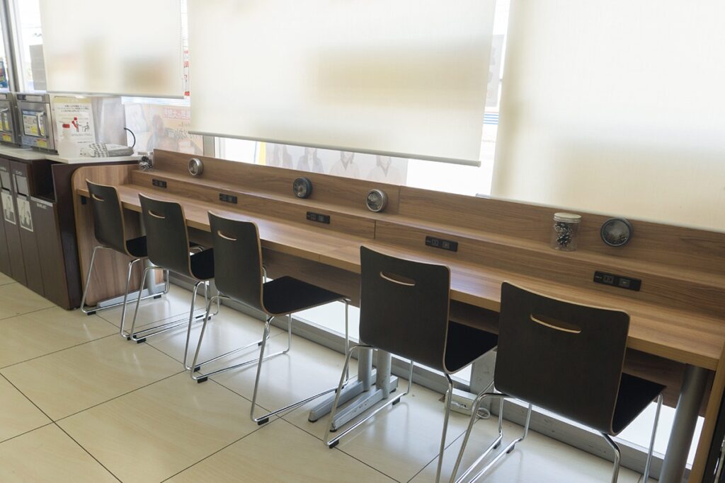 While not all Convini have them, many feature a small, informal eat-in space where you can comfortably enjoy your purchases and take a proper break.