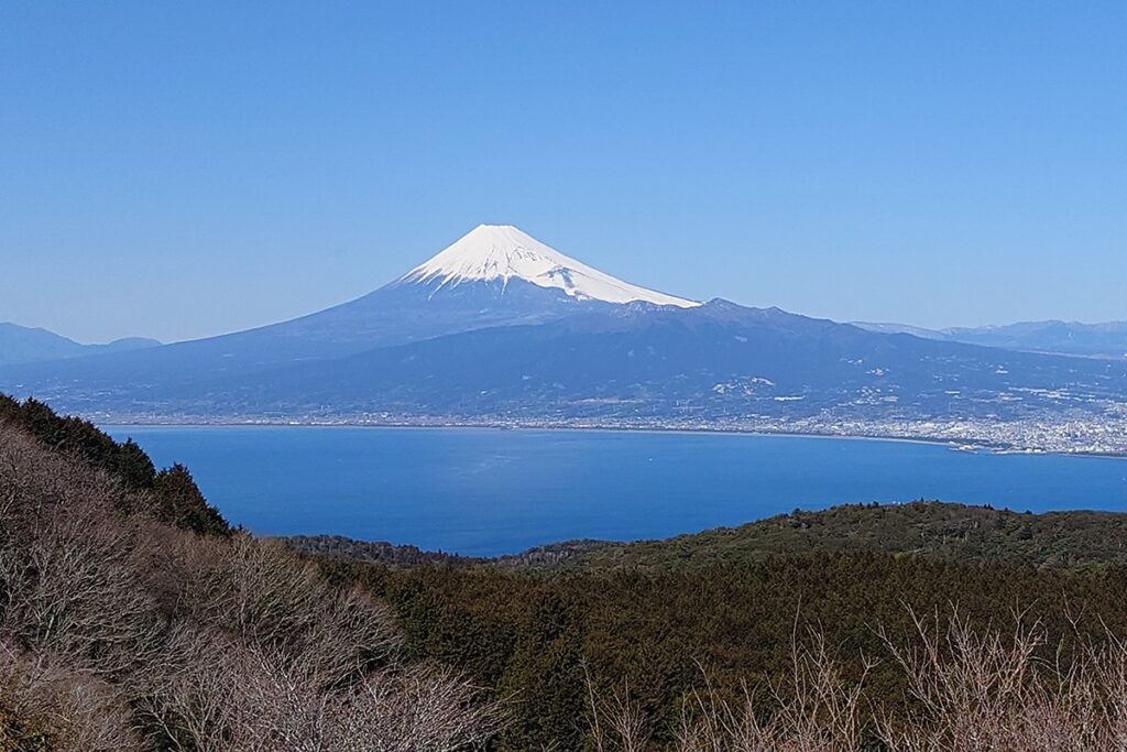 After descending from the ridge, you can continue your ride along the coastline — a mostly flat stretch that offers magnificent views of Mount Fuji rising across the water. Each viewpoint reveals a new angle of the mountain, but the clearest vistas come on crisp winter mornings when the air is dry and the sky is perfectly blue. Seeing Mount Fuji up close on such a day feels like striking gold — a fleeting moment of pure magic for any cyclist.