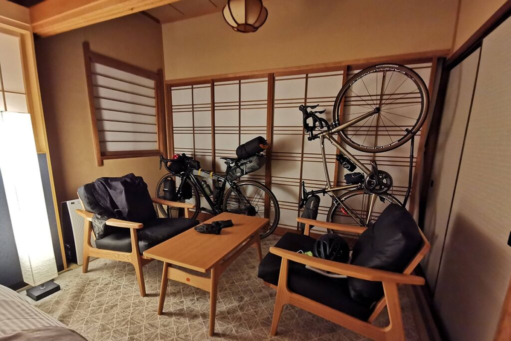 In Izu Nagaoka, you’ll even find a cyclist-friendly ryokan (traditional Japanese inn) called “KONA STAY” — a rare gem in Japan. The building maintains traditional Japanese aesthetics while offering modern amenities tailored for cyclists: secure bike storage, maintenance tools, laundry facilities, and of course, its own natural hot spring bath. It’s the perfect place to rest, refuel, and plan your next ride.]