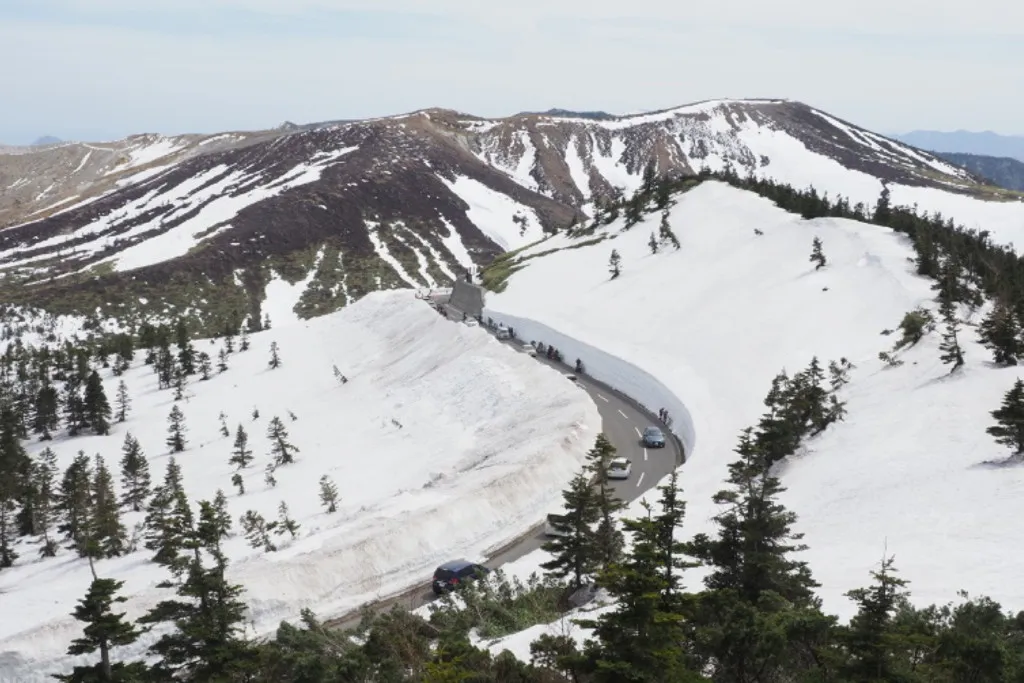 A legendary route that crosses Shibu Pass (2,172m), the highest point on Japan’s national roads. Snow corridors in spring and expansive alpine views make it a classic.