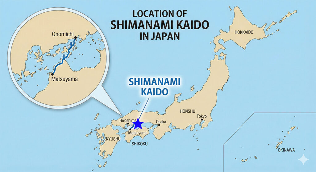Stretching approximately 70 km (43 miles), the Shimanami Kaido connects Onomichi in Hiroshima Prefecture with Imabari in Ehime Prefecture. The route hops across islands in the Seto Inland Sea via seven spectacular bridges, offering constant ocean views and gentle sea breezes.Recognized by CNN as one of the “World’s 7 Most Amazing Bike Routes,” this coastal cycling road is often called Japan’s Cycling Holy Land. Riders enjoy: